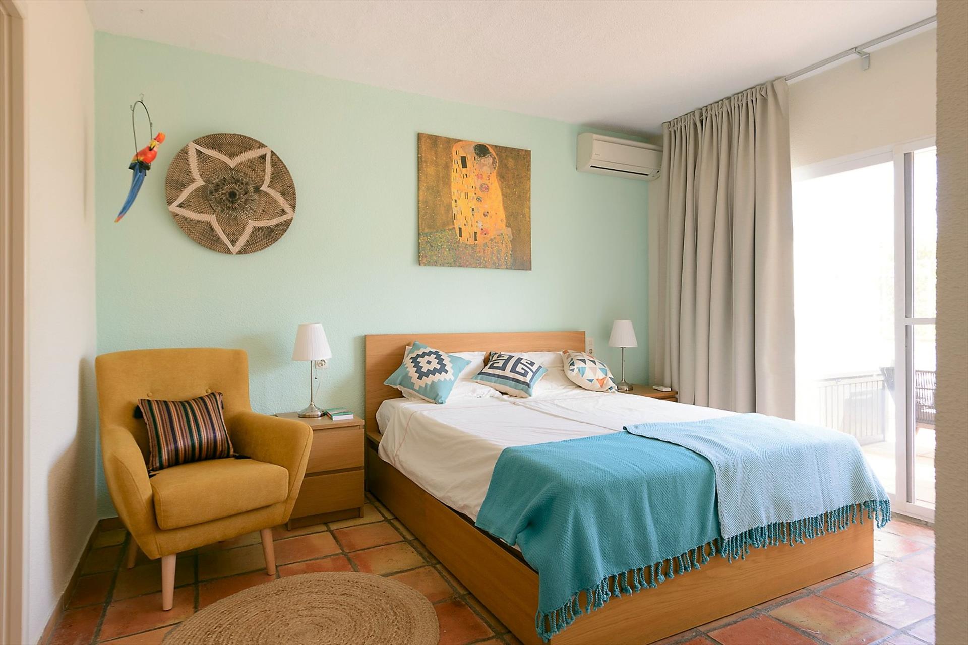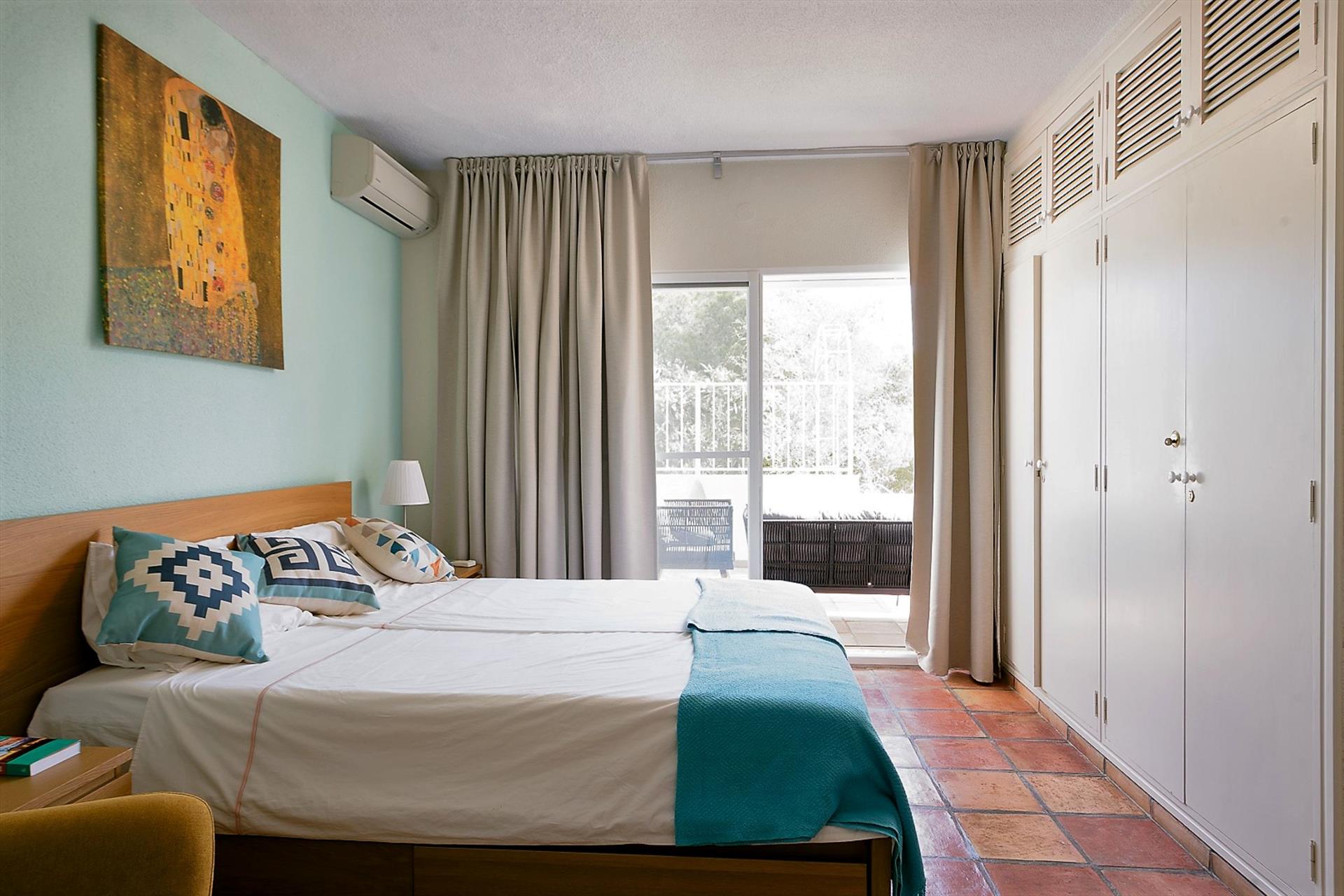 - dormitorio con cama doble y aire acondicionado