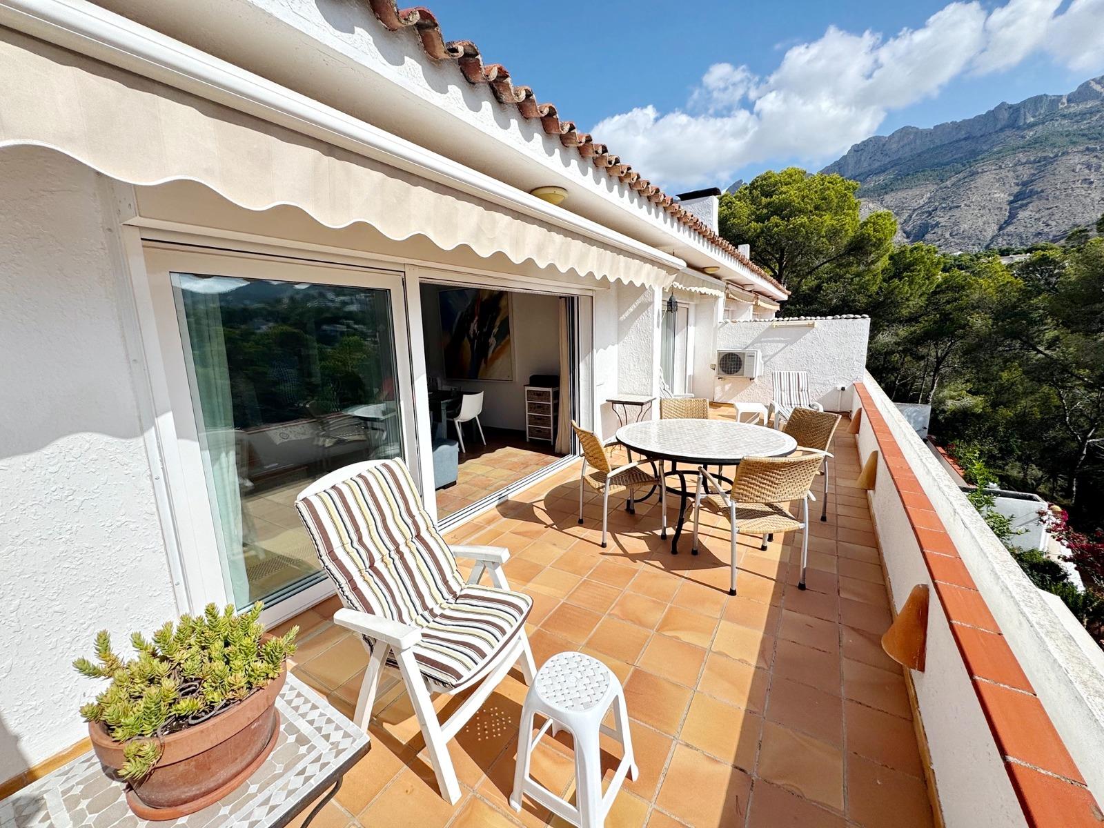 Disfruta de la tranquilidad, la naturaleza y unas vistas impresionantes en Casa Pabas – un cómodo y acogedor apartamento vacacional con amplia terraza, situado en el bonito Don Cayo Resort junto al campo de golf de Altea la Vella.