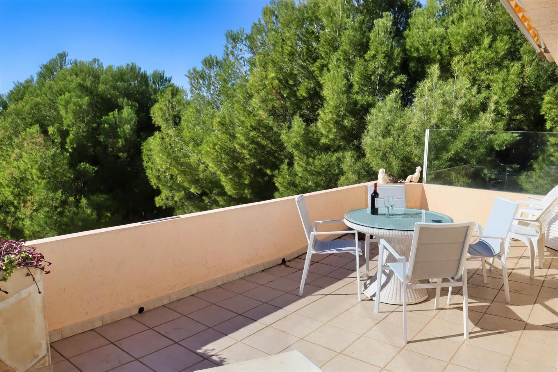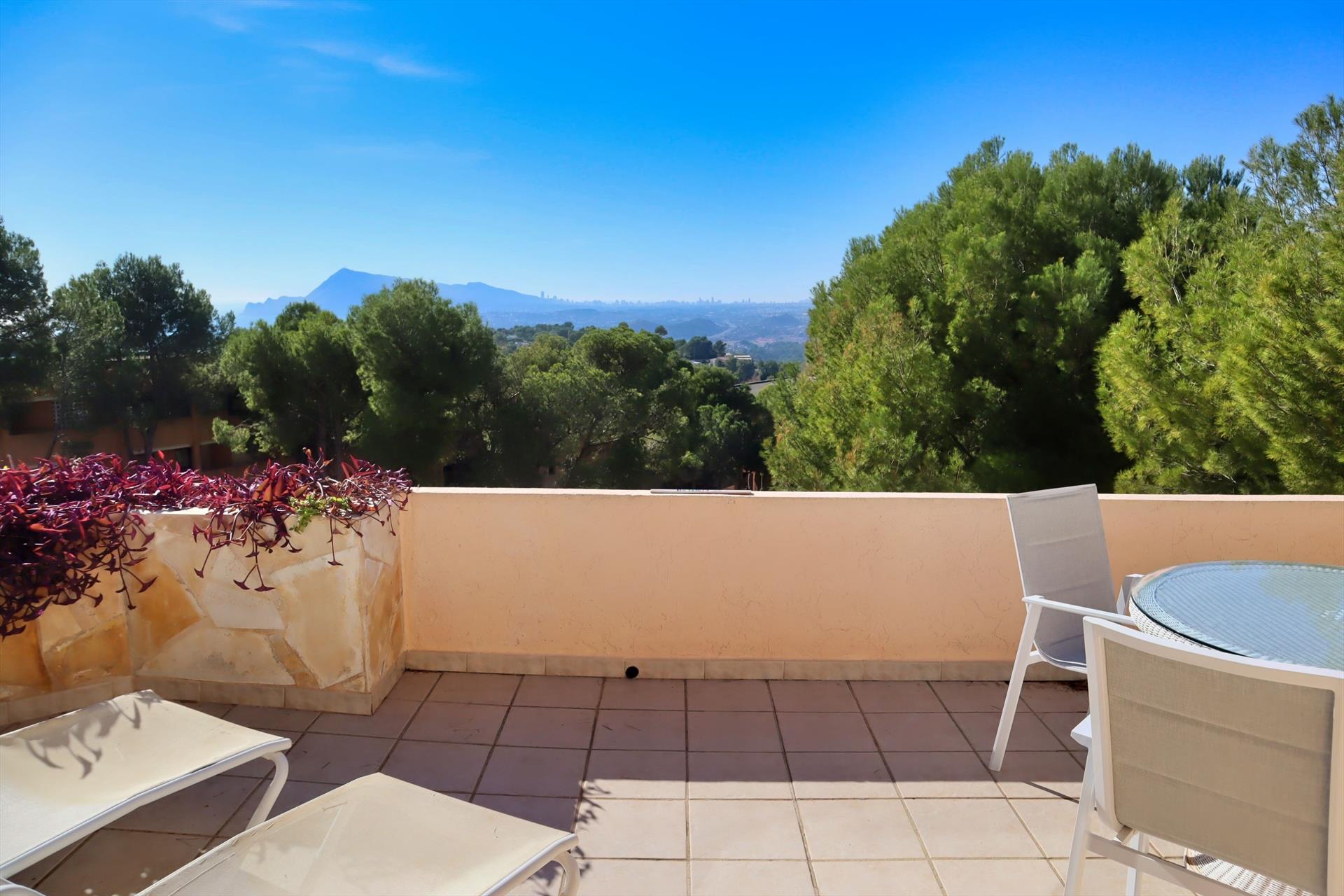 Disfruta de la tranquilidad, el espacio y las vistas en The Pinehouse – un ático moderno y cómodo en un complejo pequeño con piscina, situado a solo 2 km del encantador pueblo de Altea la Vella y a 1 km del hermoso campo de golf Don Cayo.