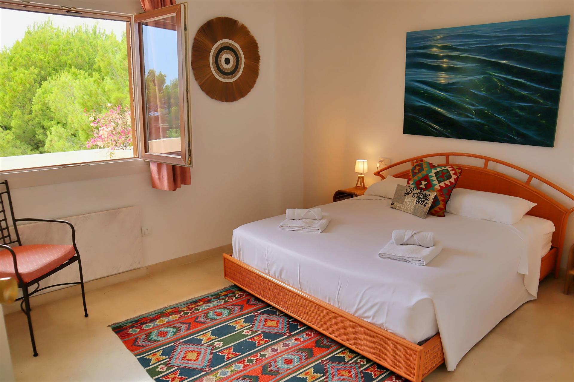 - dormitorio con cama queen size (de 200 x 160cm) y aire acondicionado