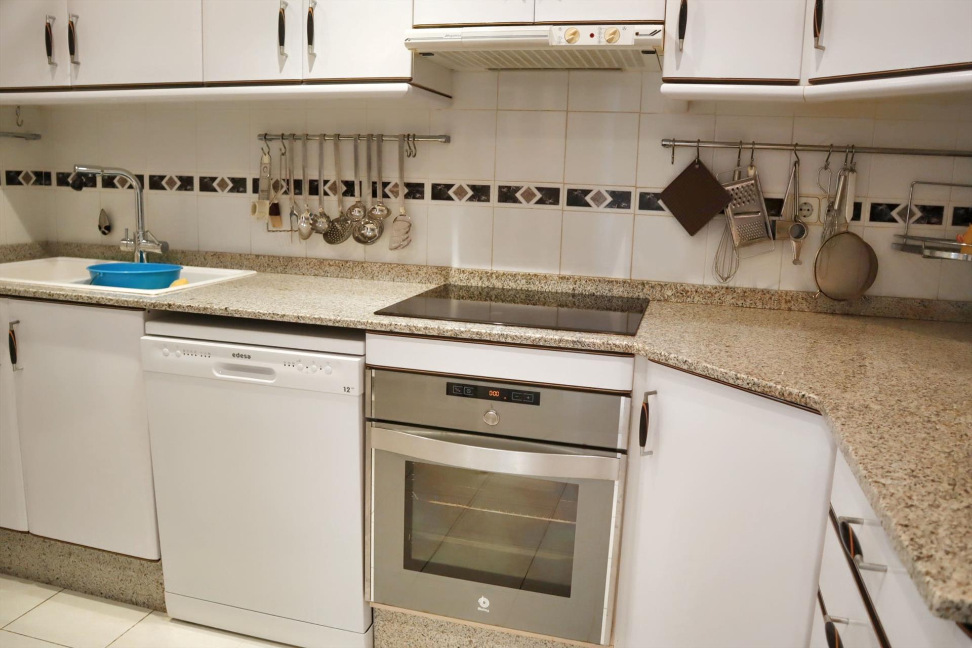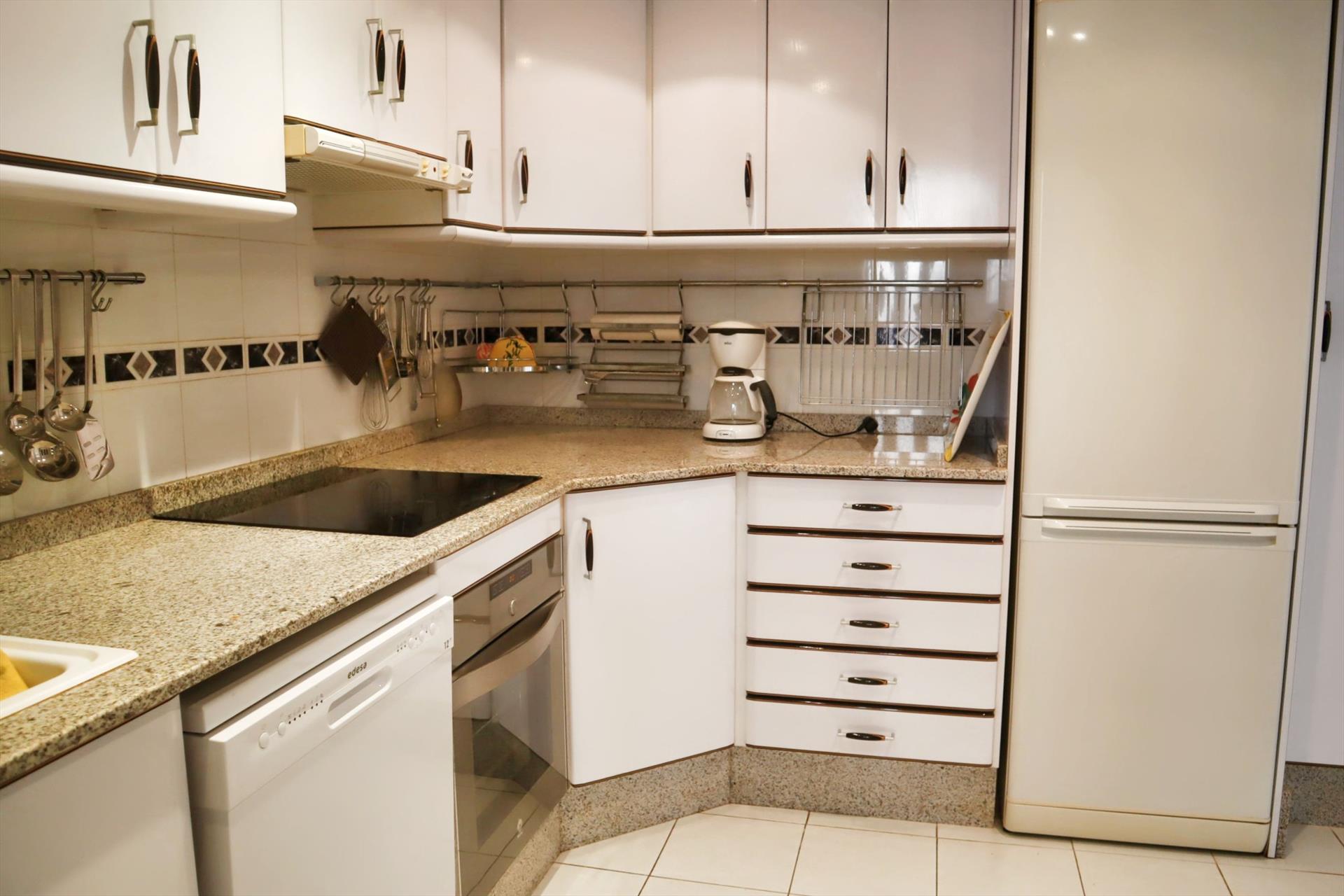 - cocina con cocina eléctrica, horno eléctrico, microondas, lavavajillas, refrigerador-congelador, cafetera, calentador de agua, tostador y exprimidor