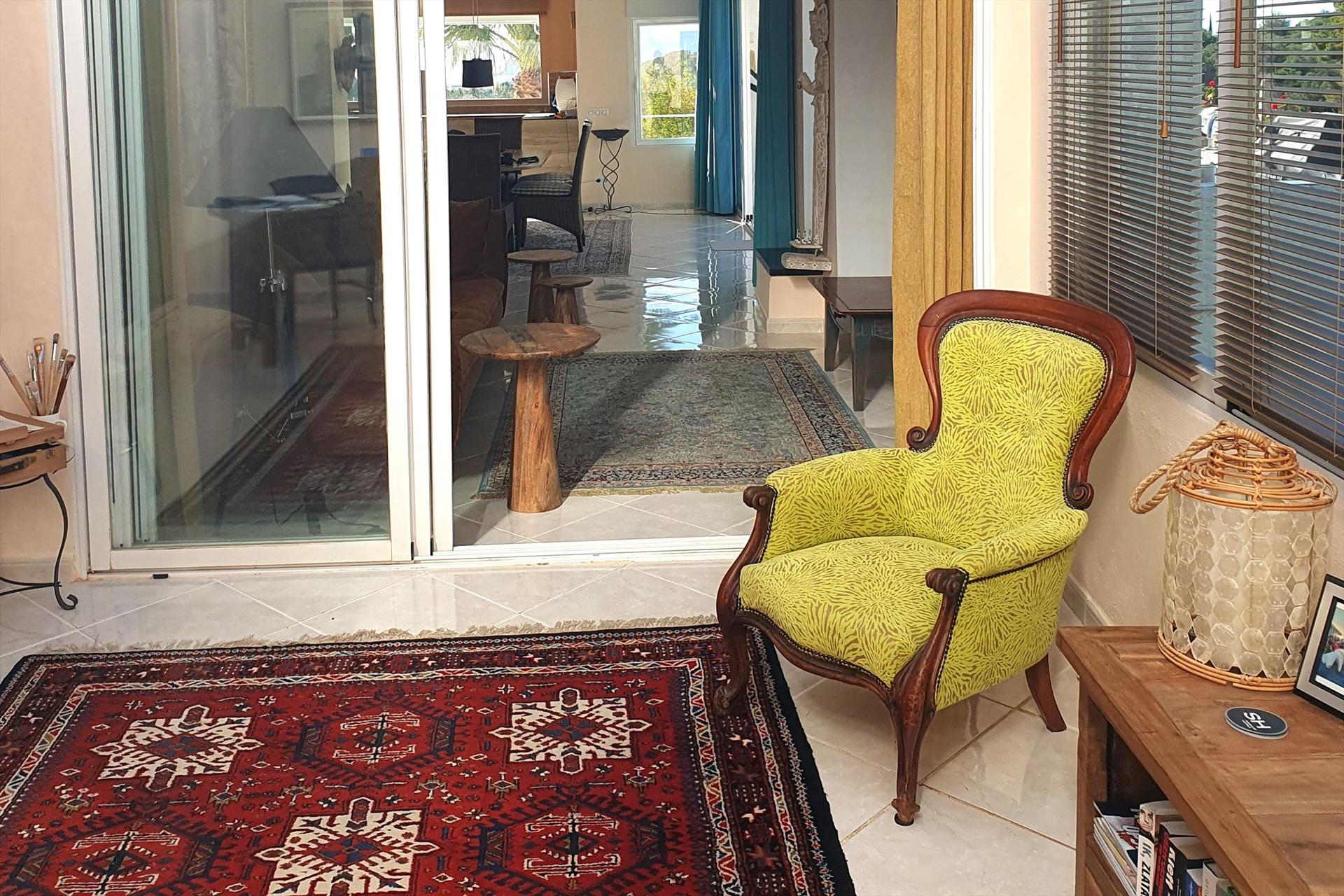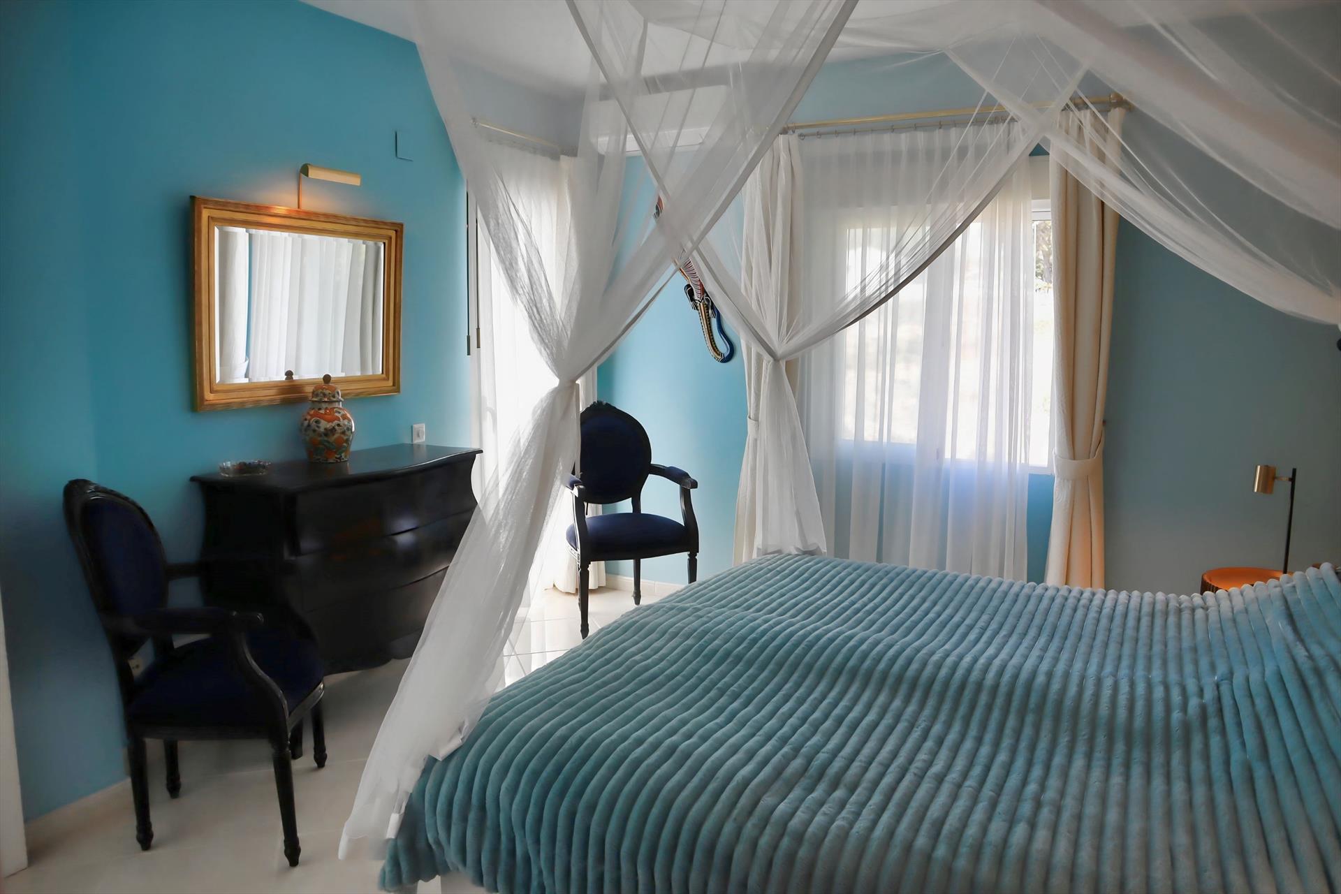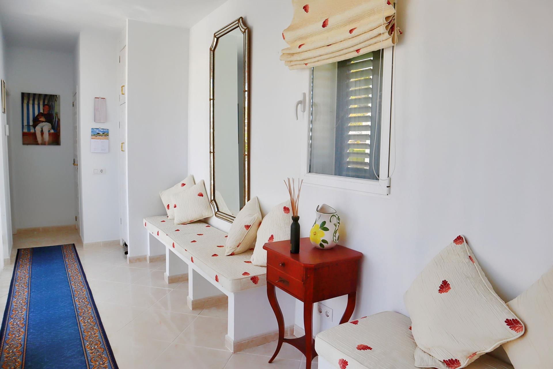 Esta villa de dos plantas, con varias terrazas, se puede alquilar por partes (apartamento Casita Palmera con dos dormitorios en la planta baja) o en su totalidad (5 dormitorios y 4 baños).