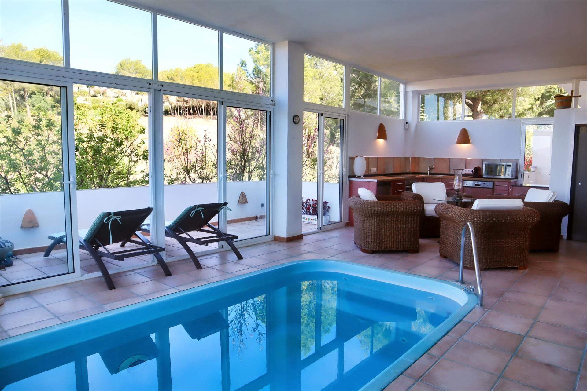 Dispone de una piscina cubierta climatizada (con jet stream para fitness cardiovascular), que al abrirse los ventanales correderos da la sensación de ser una piscina al aire libre. La calefacción (en invierno, del 1 de noviembre al 1 de mayo) está disponible por un suplemento diario.