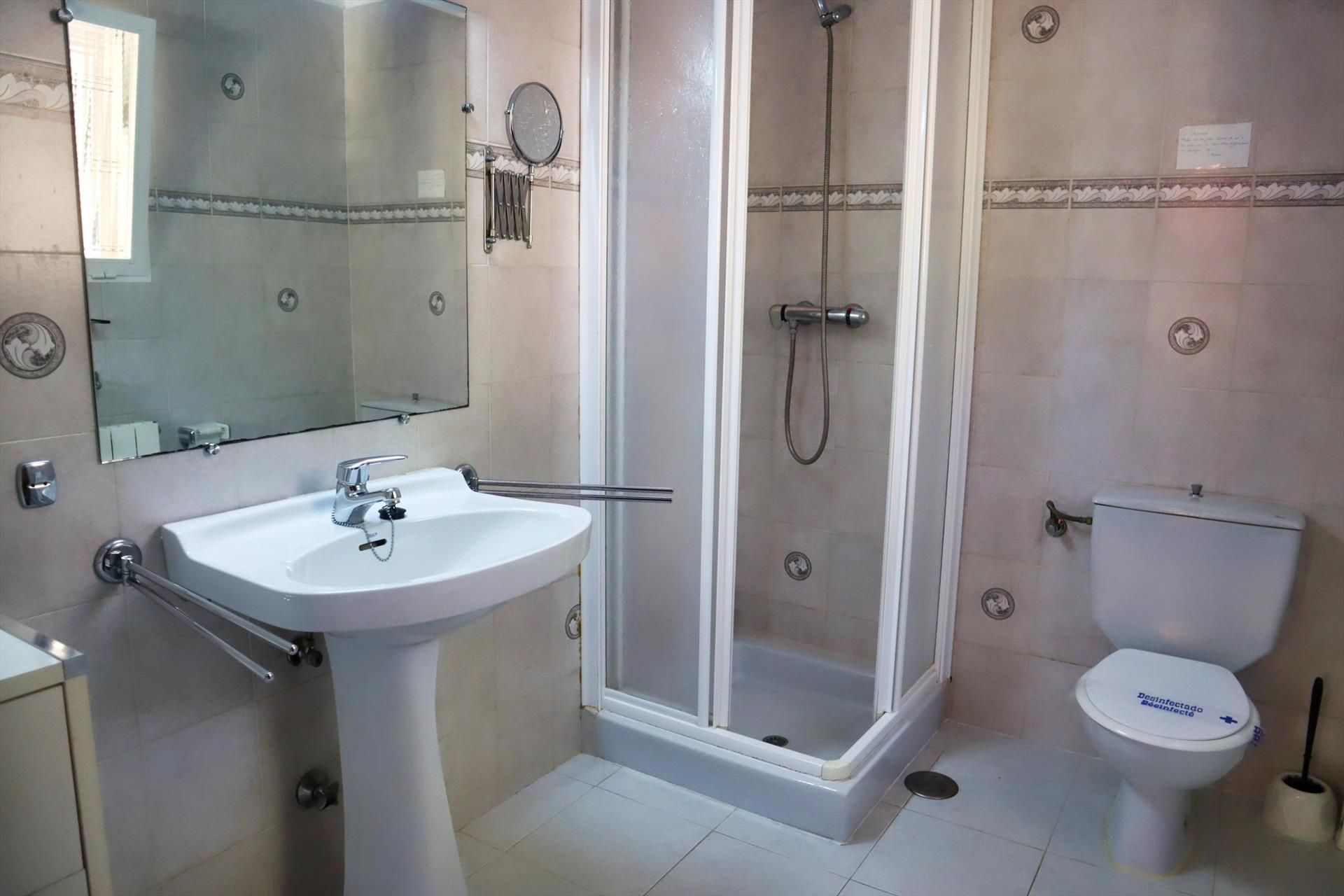 - ensuite Badezimmer mit Einzelwaschbecken, Dusche und Toilette