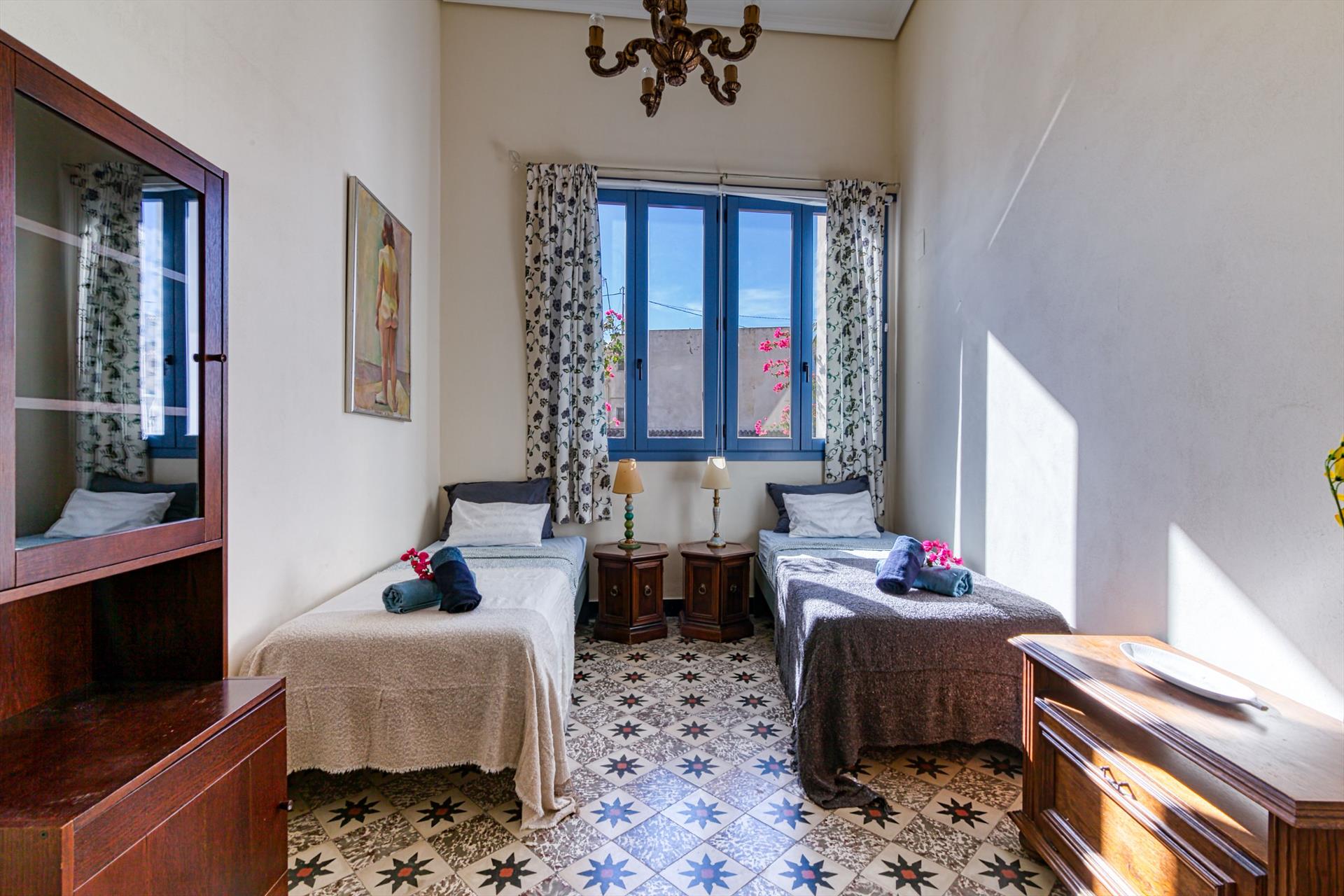 - 4 bedrooms, each with 2 single beds (measuring 200 by 90cm) and fan