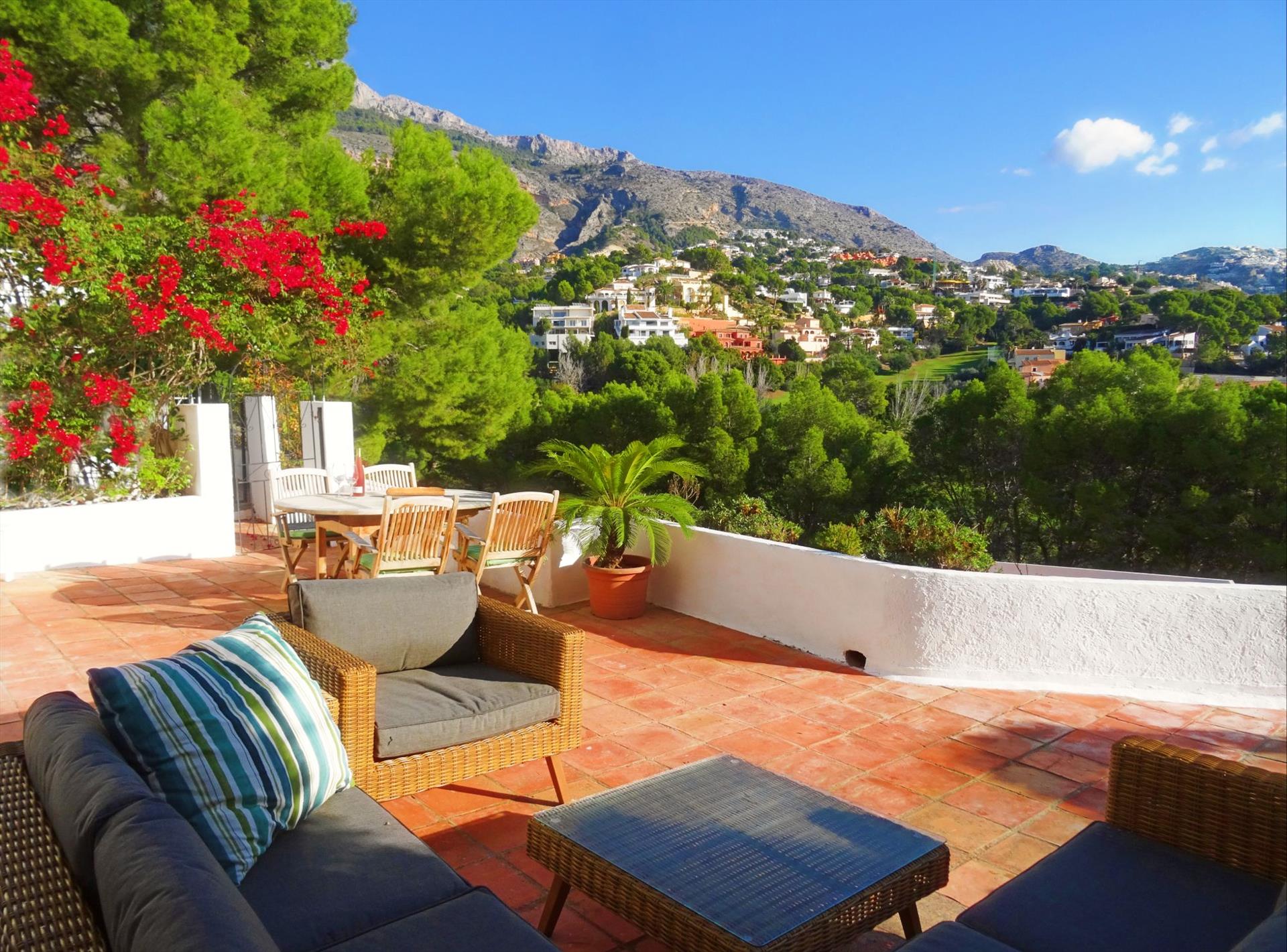 Offrez-vous un séjour tout confort entre nature et tranquillité à Don Cayo 21 – un appartement entièrement rénové avec grande terrasse, situé au bord du parcours de golf d’Altea la Vella.