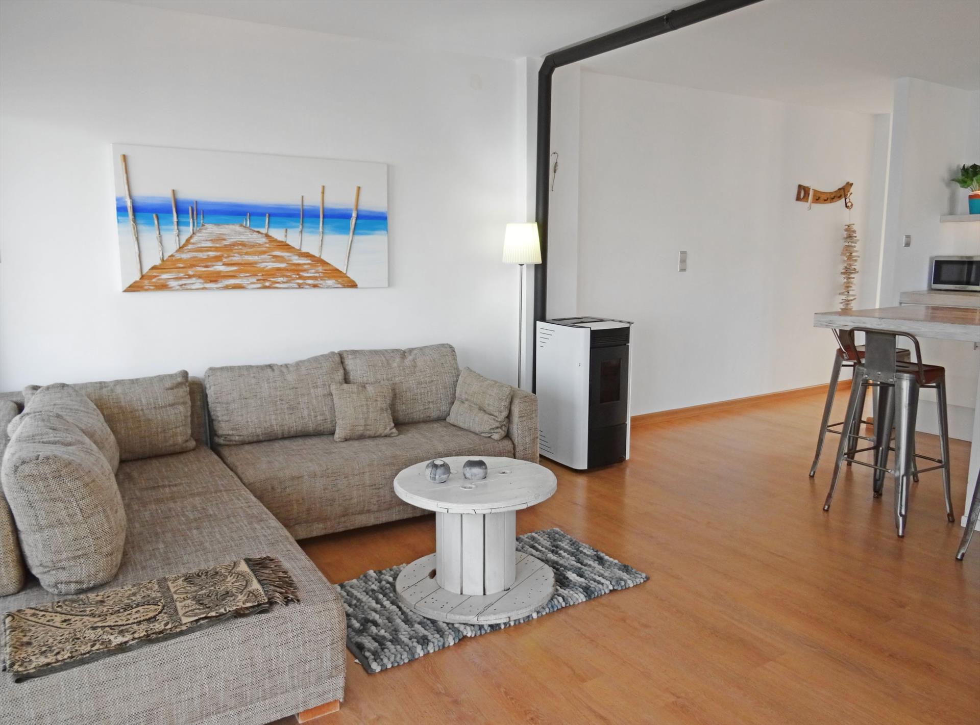 ✅ Woonkamer met comfortabele zithoek en airconditioning